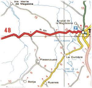 La autovía proyectada para la región (actual N-521 que une las ciudades Cáceres-Trujillo), dará un fácil acceso a la localidad, situándola a 10 minutos de dicha autovía y a 15 minutos de la Autovía E-90 , accesos que dan a la localidad una posición privilegiada para la potenciación de nuevas actividades económicas.
