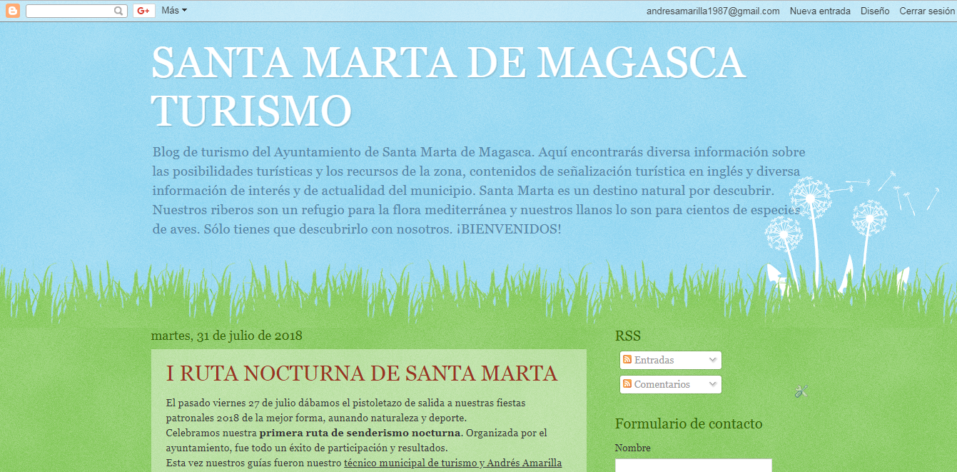 Estrenamos nueva web/blog de turismo de Santa Marta de Magasca. Aquí encontraremos diversa información sobre las posibilidades turísticas y los recursos de la zona, contenidos de señalización turística en inglés y diversa información de interés y de actualidad del municipio: https://santamartademagascaturismo.blogspot.com/